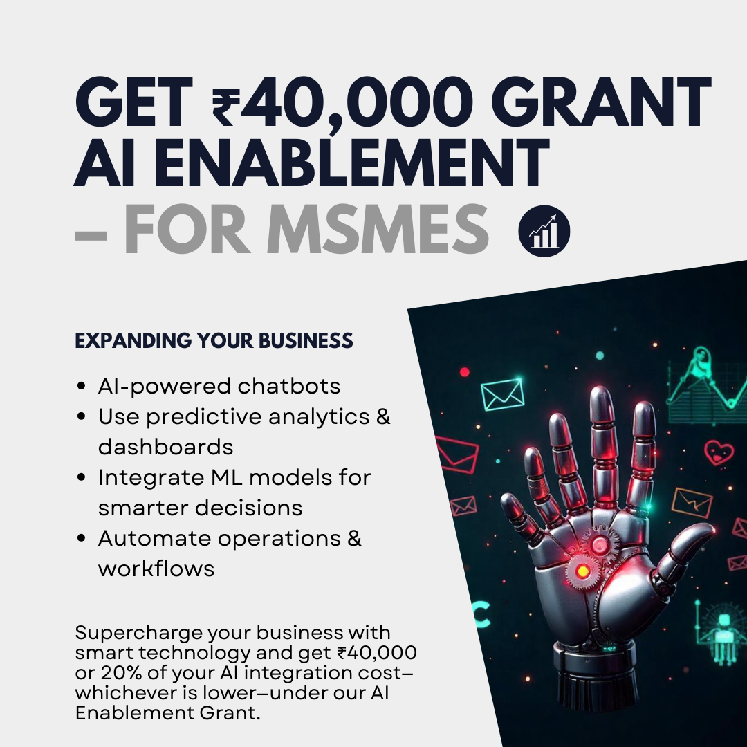 • AI Enablement Grant: Helps MSMEs integrate AI solutions into workflows and customer service.